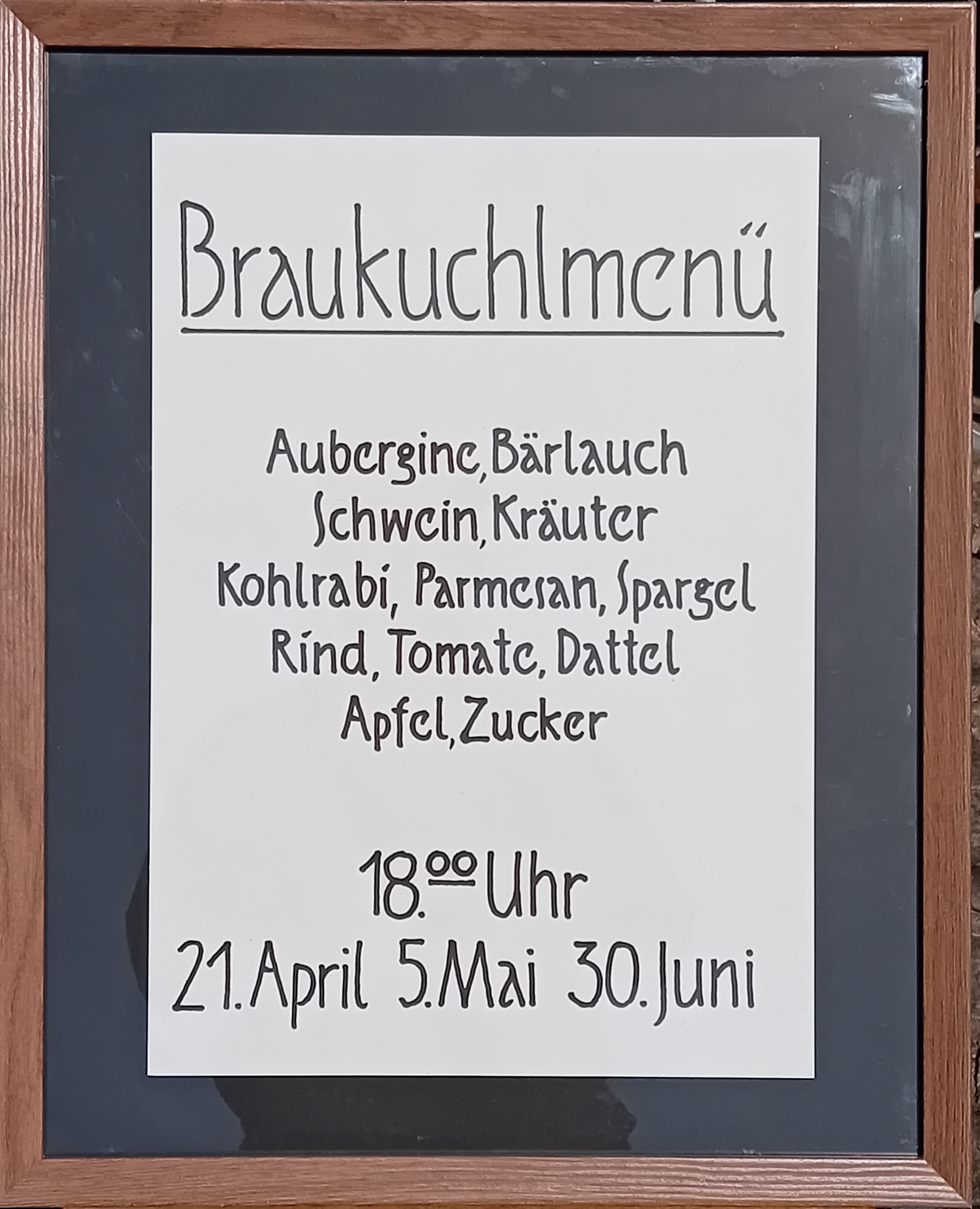 Reservierungen unter braukuchl@posteo.de oder telefonisch unter 0178/8198232! 55 € p.P.